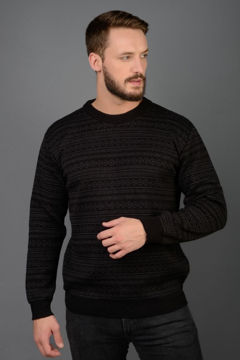 Blusão tricot de gola redonda com lindo trabalho em jacquard.