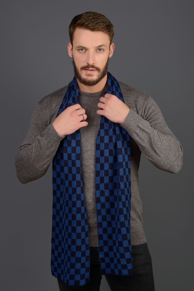 Manta / Cachecol em tricot com trama em jacquard quadriculada.