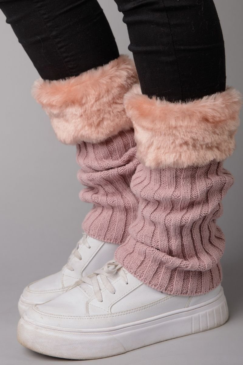 Polaina tricot com trama canelada e detalhe em pele sintética.