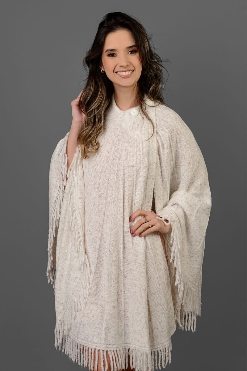 O poncho apresenta visual elegante, com ótimo caimento trazendo movimento e sofisticação ao seu look.